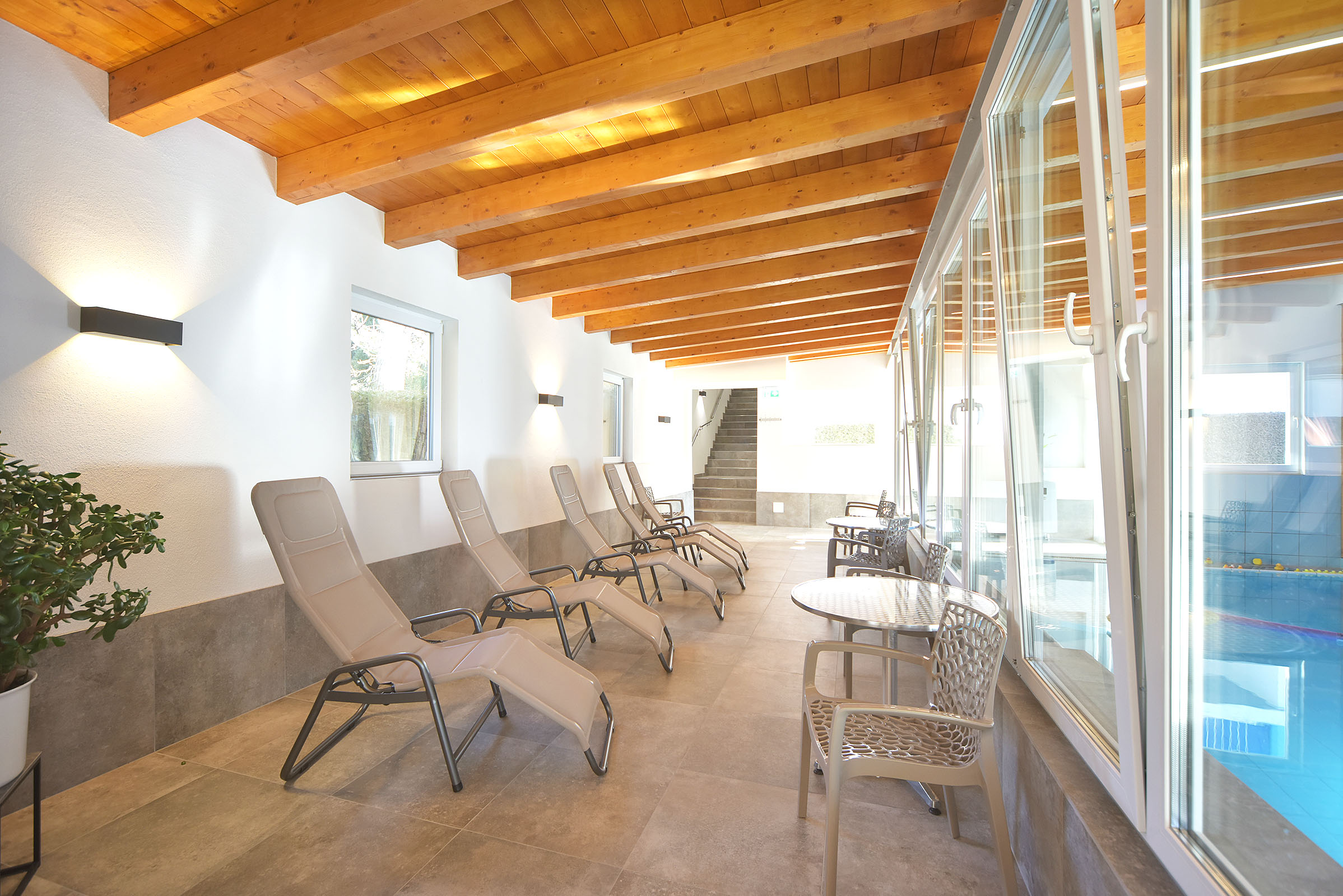 Liebe Gäste, ab sofort haben wir für Sie nach winterlichen Umbauarbeiten unsern Wellnessbereich erweitert und so haben Sie die Möglichkeit, Wetter unabhängig, den neuen Pool-Bereich zu genießen. Vom Indoor-Pool kommen Sie direkt ins Freie.